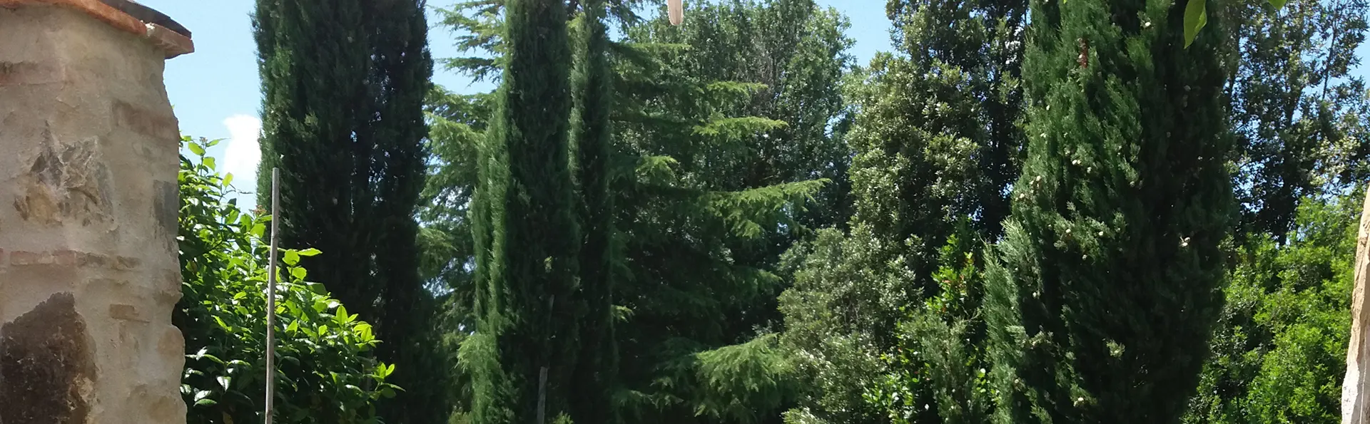 Silent and cool, in the shade of a magnificent holm oak from where it is possible to enjoy a breathtaking panorama towards the Porrona castle and the hills of the Val d'Orcia.