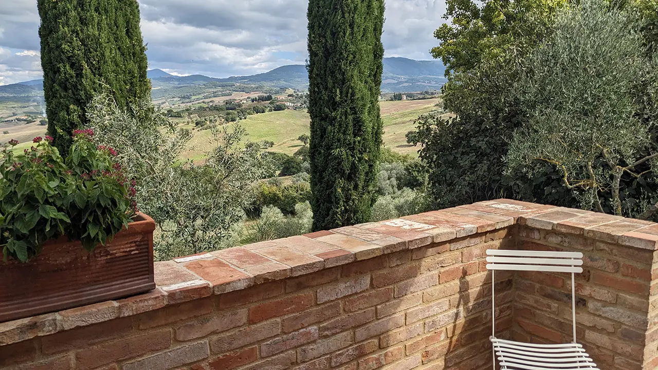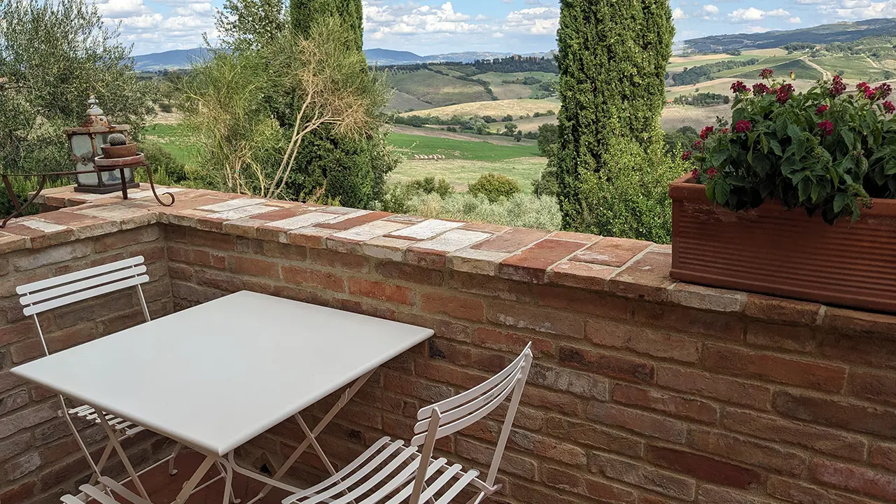 Die Wohnung verfügt über eine Terrasse mit herrlichem Panoramablick auf das Tal und den Berg Amiata.